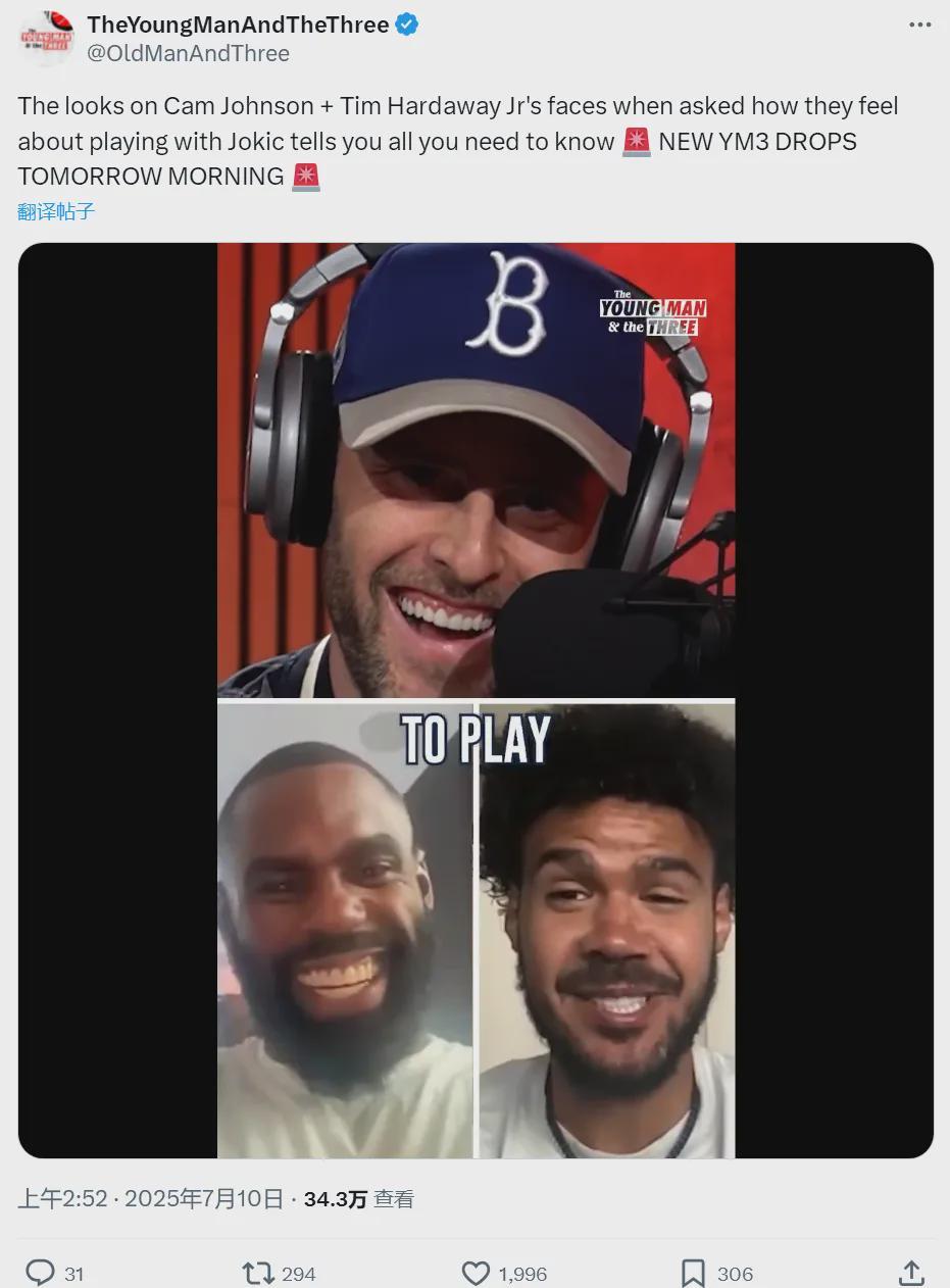 小哈达威将身披掘金10号球衣,上赛季他在活塞定点三分57中36,命中率高达63%。掘金新援小哈达威和卡梅伦-约翰逊参加节目时,两人在镜头前开怀大笑。小哈达威说:“我们俩能做自己擅长的事情了,在掘金可以轻松拿些分数。”