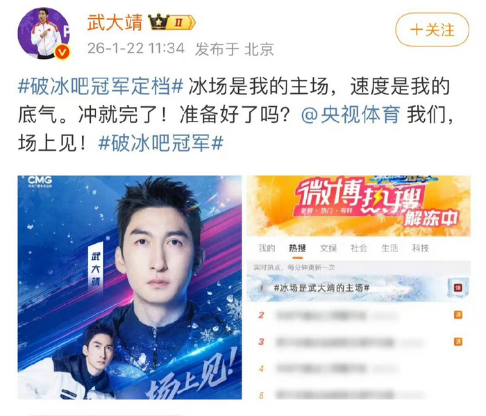 #冰场是武大靖的主场##破冰吧冠军定档# 当竞速冰刀遇上趣味破冰,这反差感拉满!定档快乐,已经迫不及待看世界冠军如何“玩转”新主场了[给你小心心]